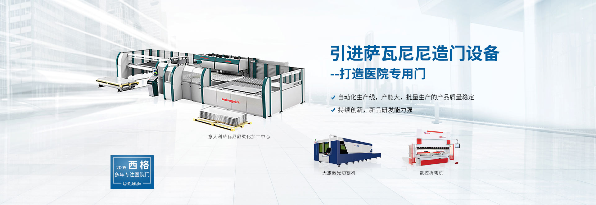 西格,國內大型醫院門生產基地,斥巨資建立 HPL和鋼質兩大材質的標準化醫院門生產線,